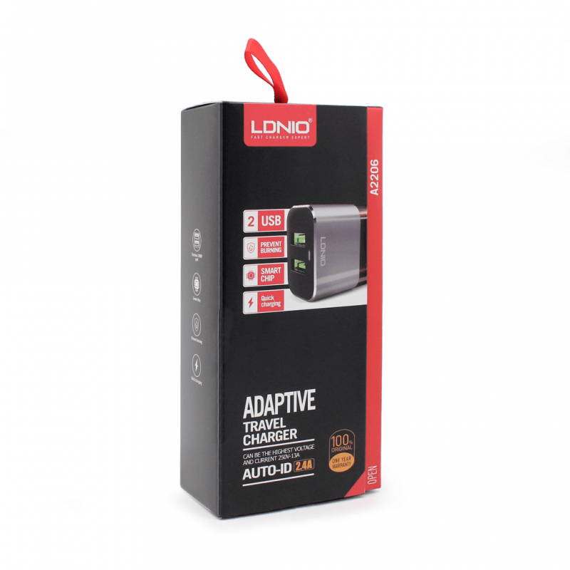 PočetnaMOBILNIBRAND LDNIOKucni punjaci LDNIO Kucni punjac LDNIO A2206 2xUSB 5V 2.4A sa micro USB kablom crno-sivi